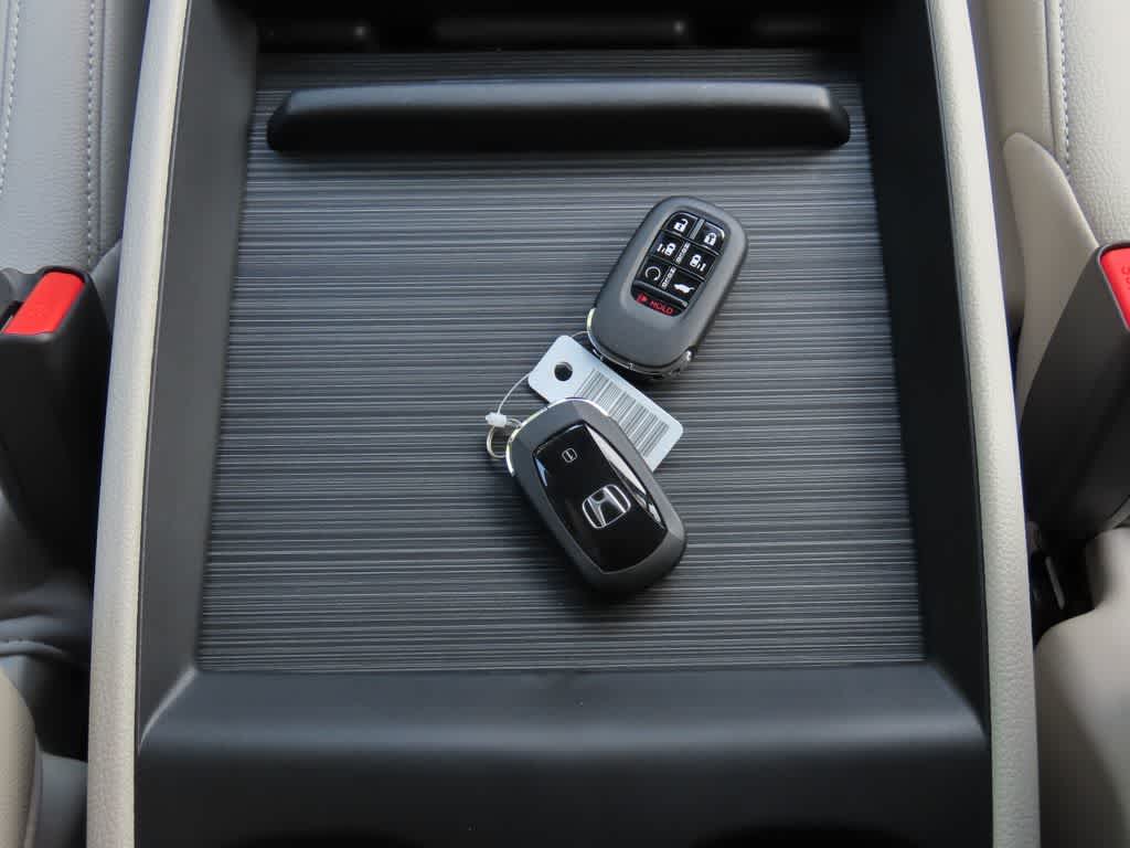 Leather Seats, Third Row Seat, Moonroof, Power Liftgate, Rear Air, Heated Driver Seat, Back-Up Camera, Satellite Radio, iPod/MP3 Input, Bluetooth®, Aluminum Wheels, Remote Engine Start, Dual Zone A/C, Power Fourth Passenger Door, Apple CarPlay® Honda EX-L with Smoke Blue Pearl exterior and Gray interior features a V6 Cylinder Engine with 280 HP at 6000 RPM*. Rear Spoiler, MP3 Player, Remote Trunk Release, Privacy Glass.