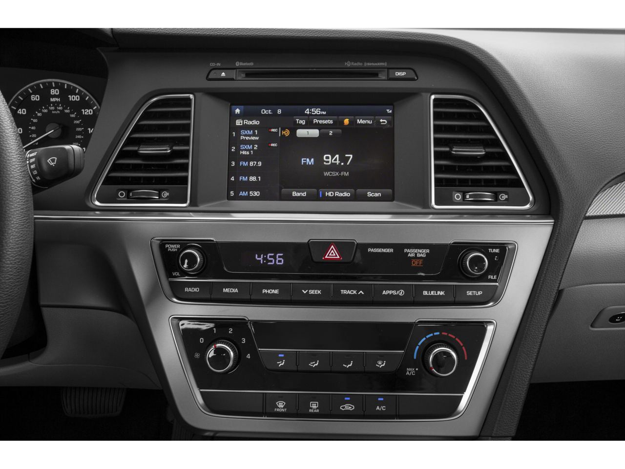 OPTION GROUP 09 Popular Equipment Package 09, leatherette interior door panel inserts, Hyundai Blue Link Telematics System (GEN 1), Rearview Backup Camera, Automatic Headlight Control, Front Bucket Seats w/Power Drivers Seat, multi-adjustable bucket, seatback pockets and 8-way power drivers seat w/2-way power lumbar support, Radio: AM/FM/SiriusXM/CD/MP3 w/Color Touchscreen, iPod/USB and auxiliary inputs, 6 speakers (2 front-door-mounted, 2 tweeters, and 2 rear) and 5-inch color touchscreen, ELECTROCHROMATIC MIRROR W/HOMELINK AND COMPASS. Rear Spoiler, Remote Trunk Release, Keyless Entry, Child Safety Locks, Steering Wheel Controls.