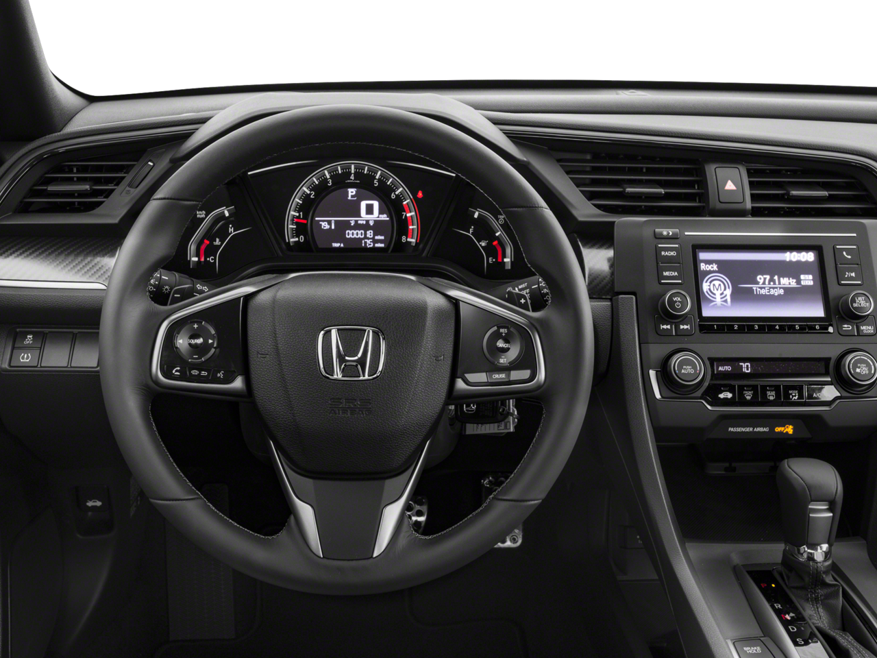 Back-Up Camera, Turbocharged, iPod/MP3 Input, Bluetooth®, Aluminum Wheels Honda Sport with Lunar Silver Metallic exterior and Black interior features a 4 Cylinder Engine with 180 HP at 6000 RPM*. Rear Spoiler, MP3 Player, Keyless Entry, Steering Wheel Controls, Child Safety Locks.