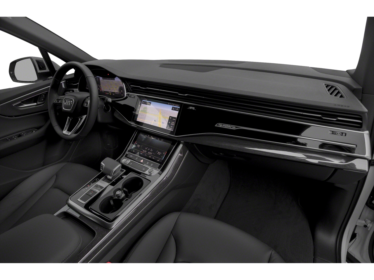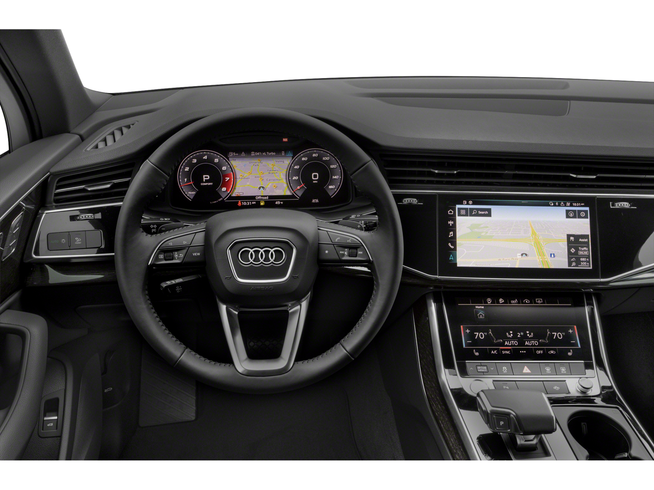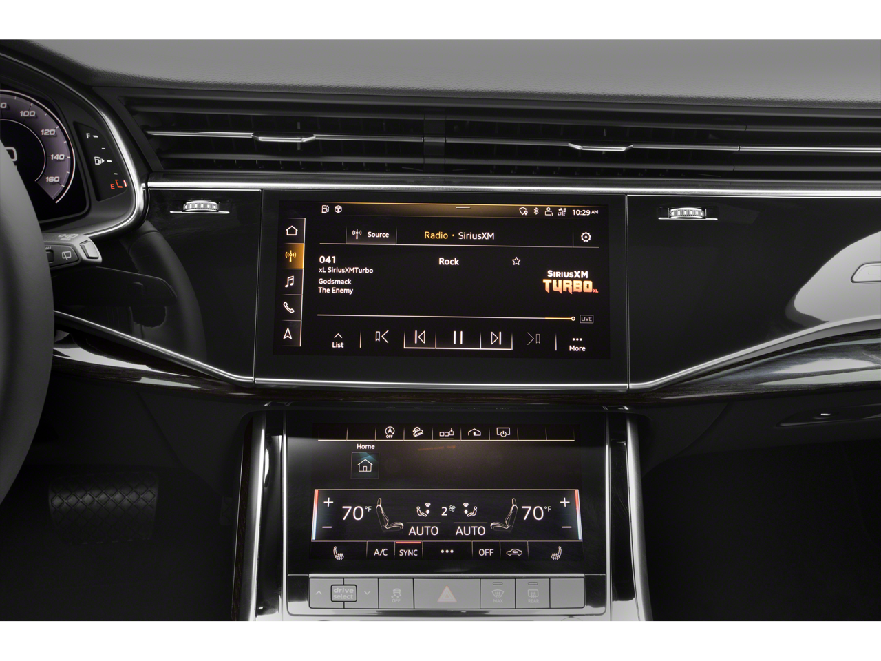 - Radio: Audi Sound System -inc: Audi connect w/online services (CARE, PRIME, PLUS), Audi smartphone interface (wired Android Auto and wireless Apple CarPlay), MMI navigation plus w/MMI touch response - 10.1" upper, 8.6" lower screen, preparation for mobile phone (Bluetooth®) and SIRIUS satellite radio (w/3-month complimentary subscription)