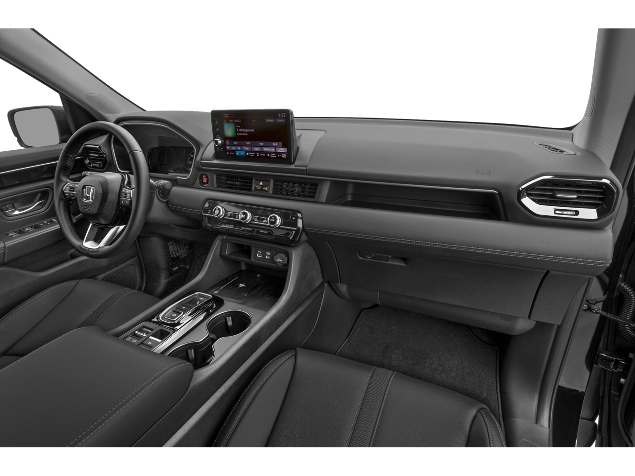 - Radio: 245-Watt Audio System -inc: 9 speakers w/subwoofer, 9" color touchscreen, Bluetooth® HandsFreeLink and streaming audio, Radio Data System (RDS), Speed-sensitive Volume Compensation (SVC), front 12-volt power outlet, wireless Apple CarPlay and Android Auto compatibility, Qi wireless phone charger, SMS text message function, SiriusXM (SiriusXM requires a subscription after any trial period, If you decide to continue your SiriusXM service at the end of your trial subscription, the plan you choose will automatically renew and bill at then-current rates until you call SiriusXM at 1-866-635-2349 to cancel, See our customer agreement for complete terms at www.siriusxm.com, Fees and programming subject to change, Available in the 48 contiguous United States and D.C, SiriusXM and all related marks and logos are trademarks of SiriusXM Radio Inc.), HD Radio, 2.5-amp USB type-A smartphone/audio interface port in front console, 3.0-amp USB type-C charging port in front console and CabinTalk in-car PA system